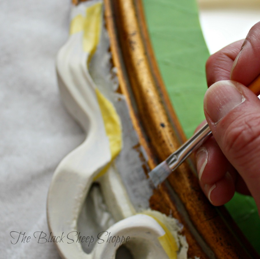 To update the finish I chose Paris Grey and Old White. First I taped off the mirror with painters tape.