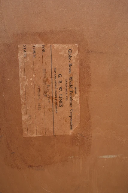 The vanity was made circa 1940's, give or take a few years. It was manufactured by the Globe-Bosse-World Furniture Corporation in Evansville, Indiana. According to the Vanderburgh County Historical Society's website, the company was formed as a merger of three major companies in 1910 and was later destroyed by a fire in 1946. The majority of their operations ended following the fire, although a limited amount of furniture was manufactured until the early 1960's.