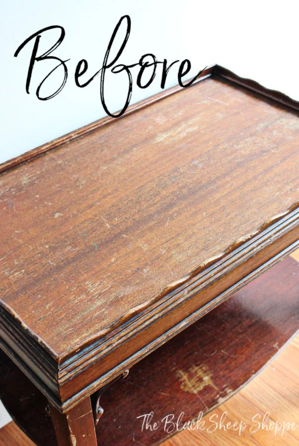 Small side tables don't have large profit margins for me, but I can't resist them IF they are cute and AND the price is right. The finish is heavily damaged on this one, but the details of the design are sweet. Fortunately, the makeover was a quick and easy project.